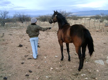 Cow "muffins" are scary objects and need to be carefully watched", according to Breeze, Kim's Quarter Horse Filly.