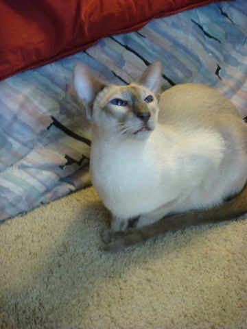 This "wistful" facial expression that our other Oriental shorthair kitty is displaying, Hush Puppy, Trouble's brother, appears that he is gazing at me with an abundance of love. The look in his eyes speaks to me tenderly, of his affection.