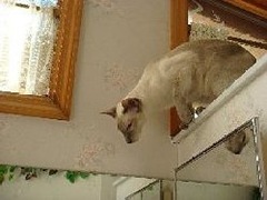 Cats hava always amazed me with their curiosity, and determination to get what they want. I could sit and watch for hours at a cat looking at themselves in a convenient mirror. I have seen them do the funniest things, even attacking their own image, or something that is as fake as a Three-dollar-bill, just having the time of their lives. They can be such entertaining little creatures.